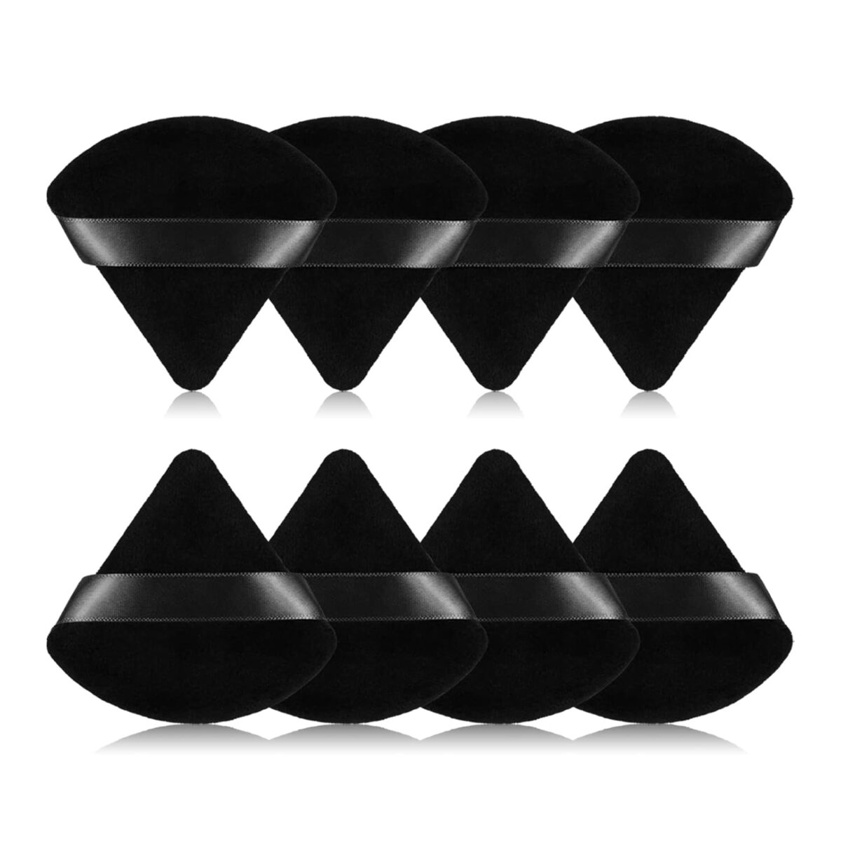 8Pcs of Triangular Powder Puff Makeup Sponges, Made of Super-soft Velvet, Designed for Contouring, Eye, and Corner, Beauty Blender Foundation Mixing Container.(Black)