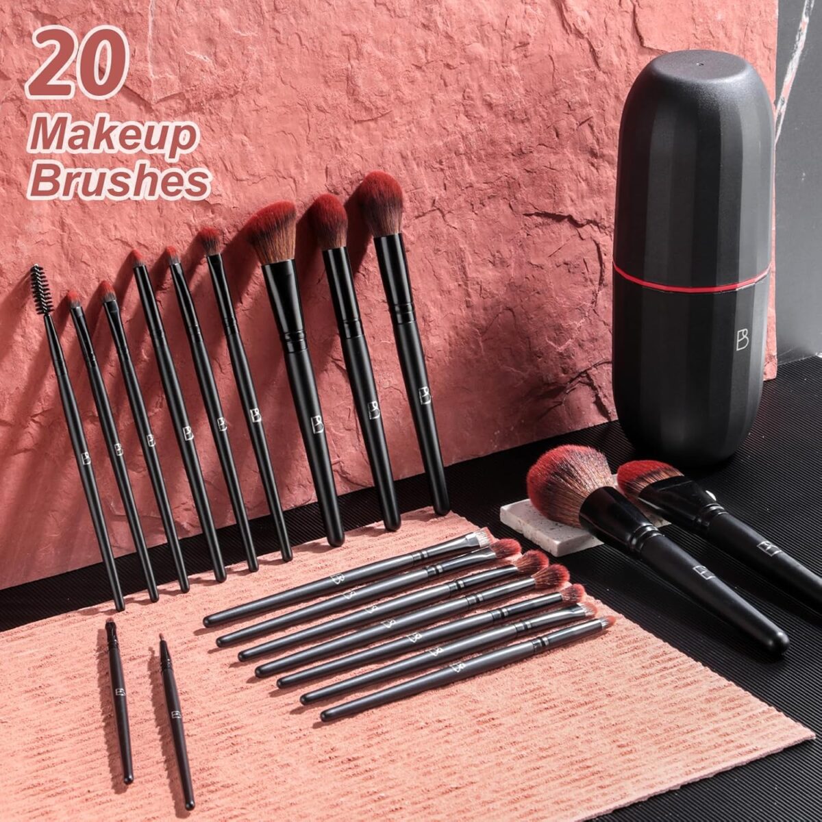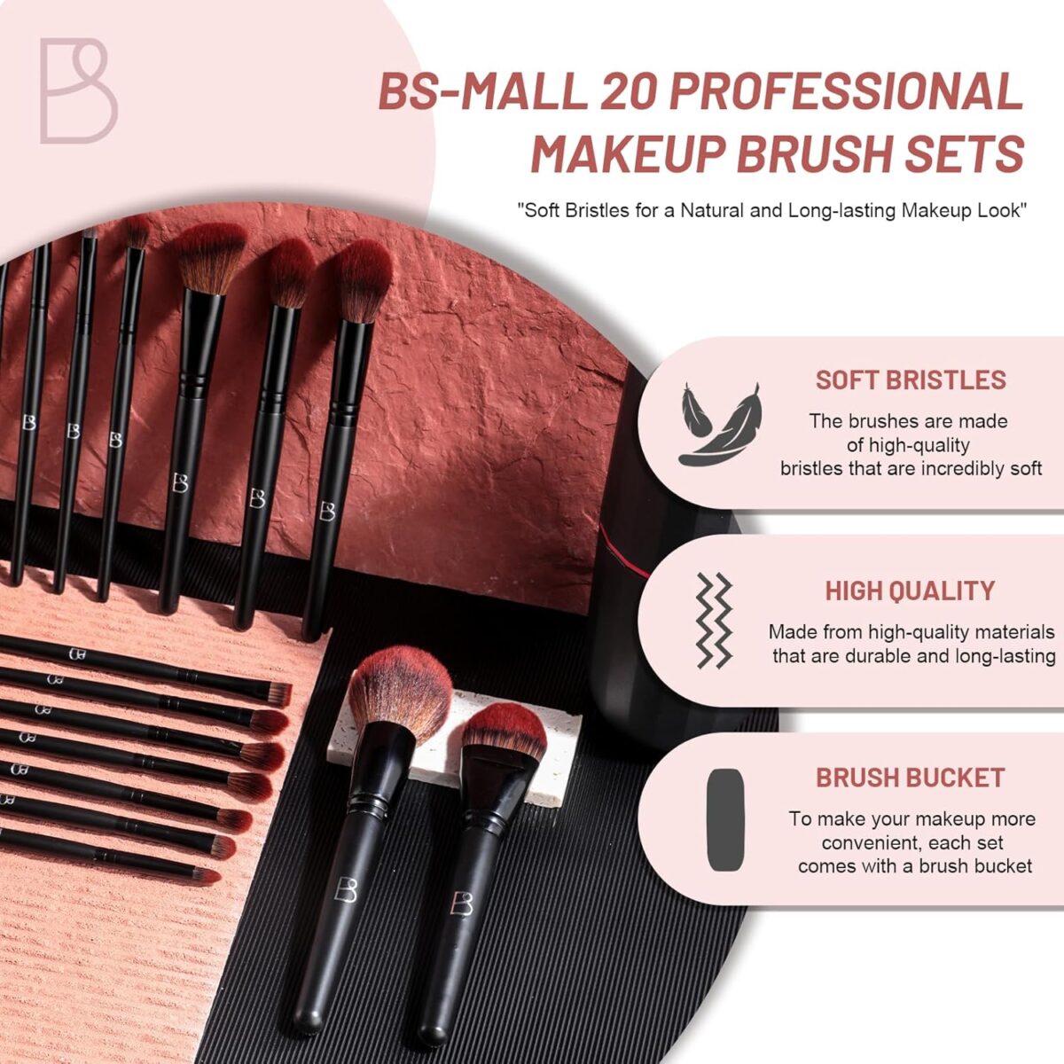 BS-MALL Makeup Brushes Set Professional – 20Pcs Premium Synthetic Foundation Powder Concealers Eye shadows Blush Makeup Brushes with Black case
