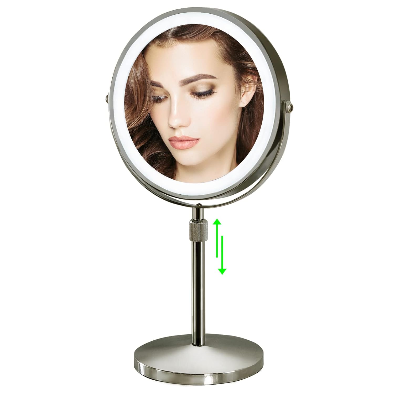 - 1x or 10X Double Sided Magnifying Vanity Mirror: Through 1x lighted mirror, you can see your normal overall makeup. Through 10x magnifying mirror, you can see the details of your face in high-definition. For example, when you draw eyeliner, paint eyelashes or eyebrows and wear contact lenses, this magnifying mirror side can be used.
