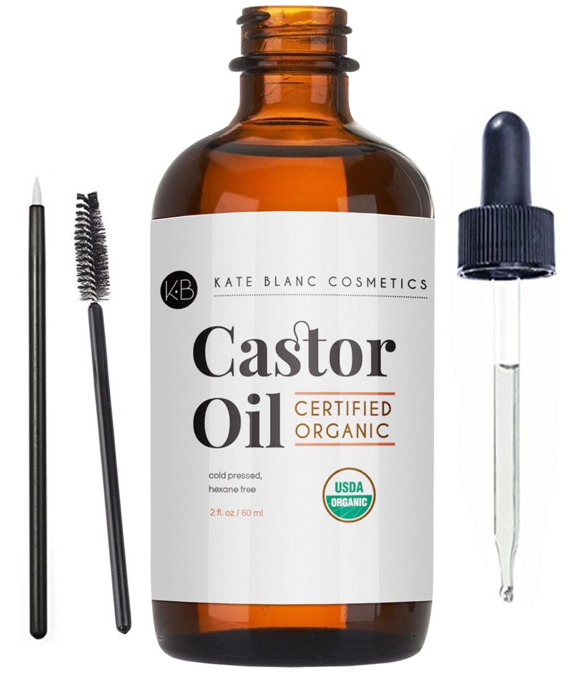 HomeCosmetics Kate Blanc Cosmetics Castor Oil Organic (2oz), 100% Pure, Cold Pressed, Hexane Free. Stimulate Growth for Hair, Eyelashes, Eyebrows. Hair Treatment Starter Kit & Skin Moisturizer
