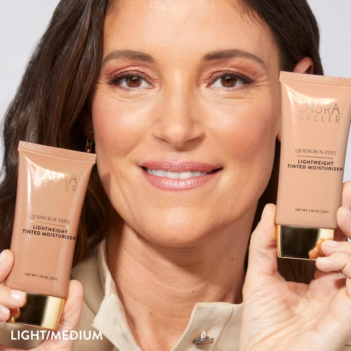 HomeCosmetics LAURA GELLER NEW YORK Quench-n-Tint Hydrating Foundation – Light – Sheer to Light Buildable Coverage – Natural Glow Finish – Lightweight Formula with Hyaluronic Acid