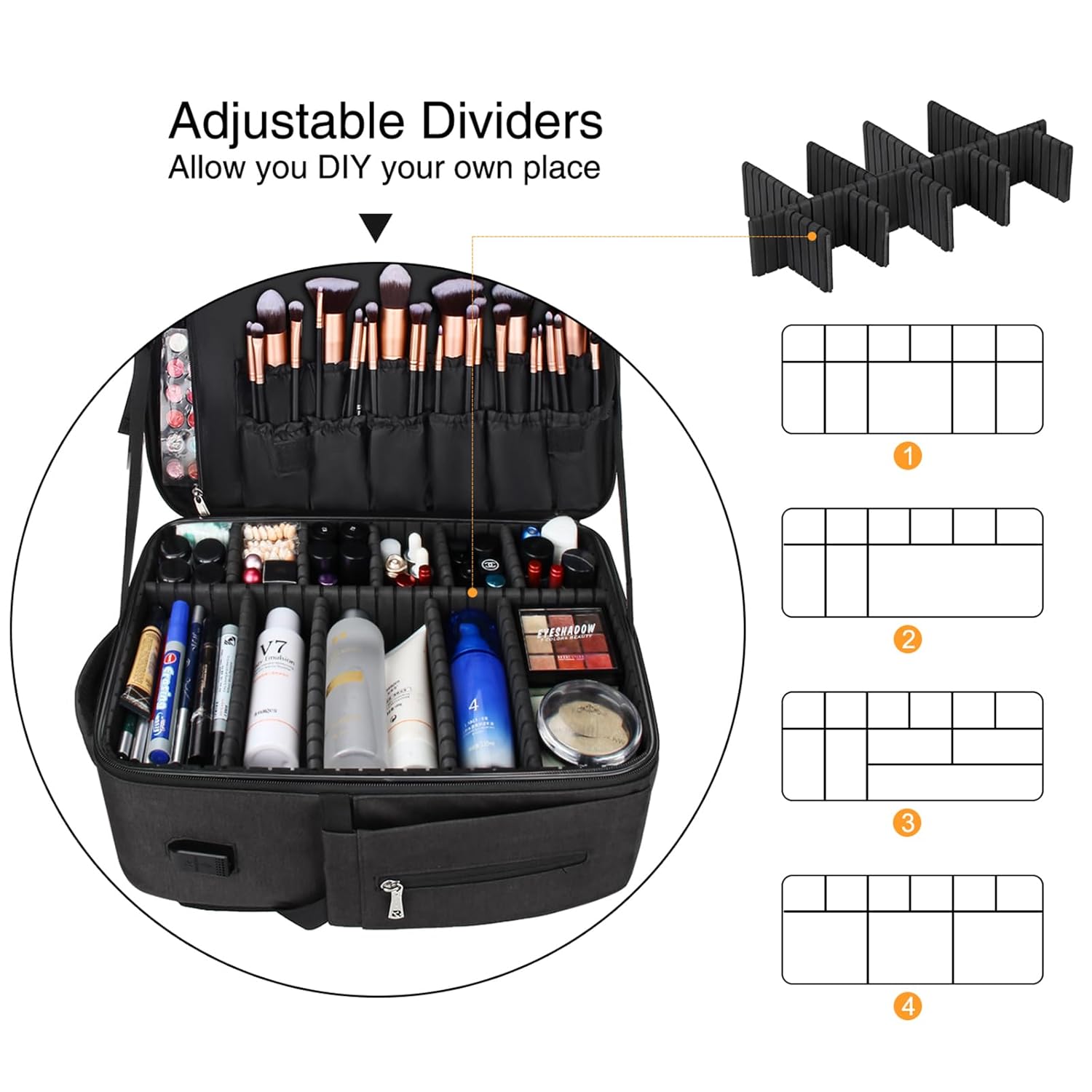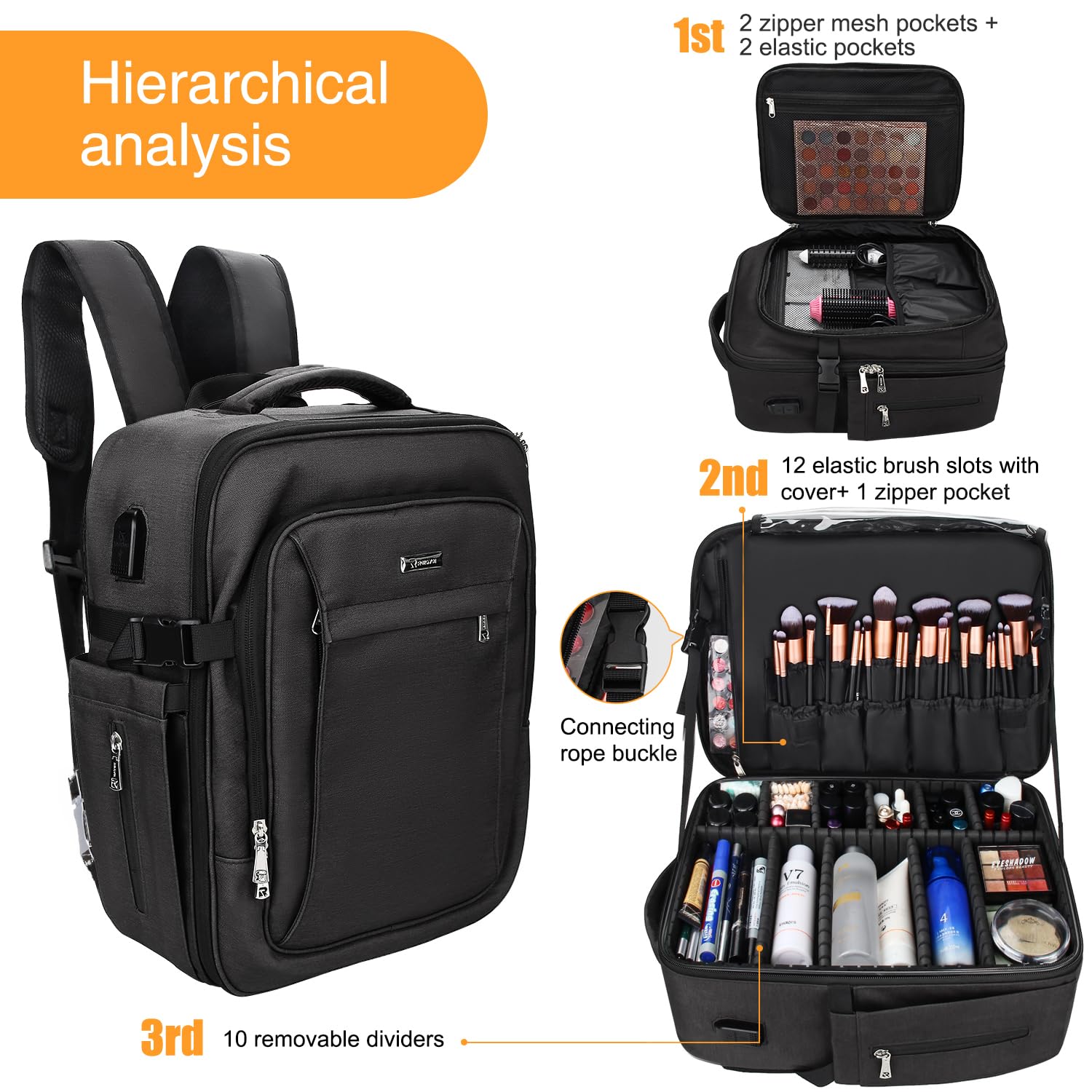 - Adjustable Divider: This makeup backpack has separable sections and segments to keep all necessities tidy and orderly. You can also design your own compartments with adjustable dividers.